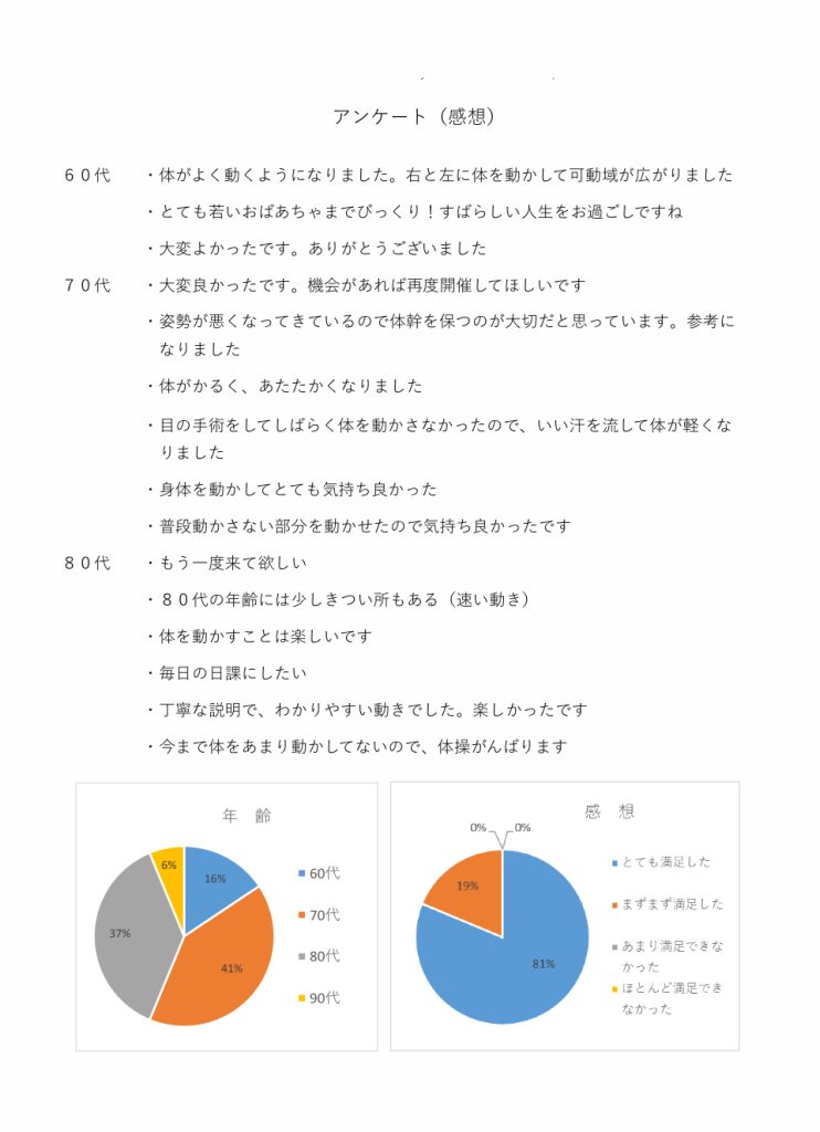 総勢30名以上の方が参加してくださり、約1時間半、一緒に体操をしました。